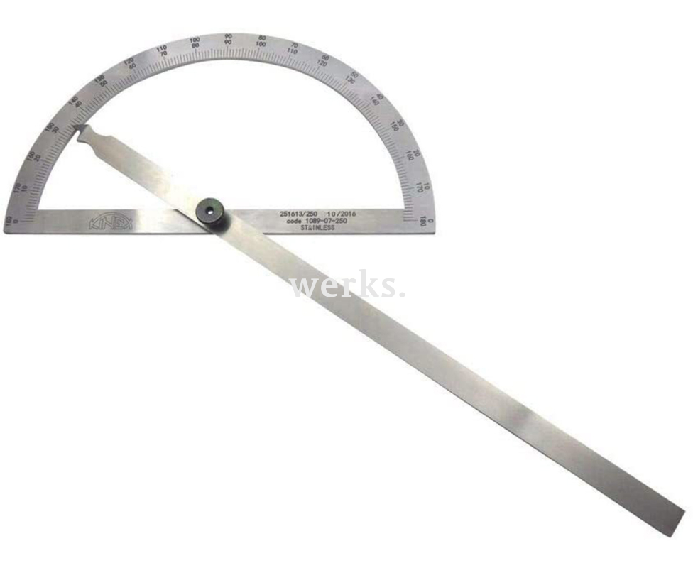 Профессиональный угломер Kinex 1089-07-250 имеет диапазон измерений от 0 до 180° и размеры 250x400 мм. Этот инструмент предназначен для быстрого и удобного измерения и переноса углов. Он обеспечивает надежную защиту от коррозии благодаря использованию нержавеющей стали.