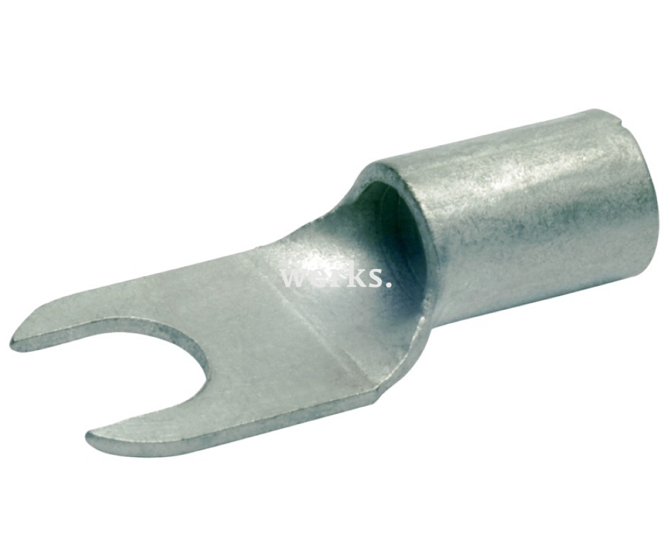 Надежный и прочный вилочный наконечник медный луженый DIN 46234 1,5-2,5 мм² для крепления на болт М6,0 Klauke KLK1630C6 в упаковке по 100 штук, предназначен для кабелей с сечением 1,5 - 2,5 мм². Изготовлен из высококачественной электротехнической меди, обладающей улучшенными характеристиками для опрессовки. Точная форма хвостовика обеспечивает легкость в заправке жилы.