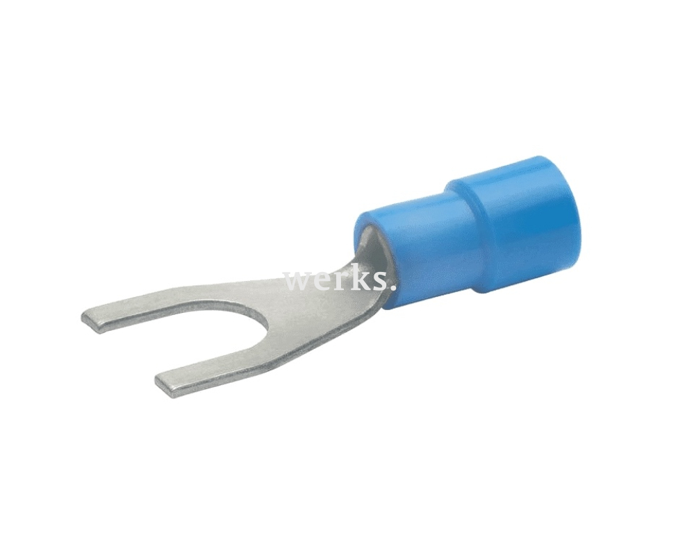 Изолированный медный вилочный наконечник DIN 46237, размер 1,5-2,5 мм², предназначенный для крепления на болт М6,0, модель Klauke KLK630C6, в упаковке 100 штук, подходит для кабелей сечением 1,5 - 2,5 мм². Изготовлен из высококачественной электротехнической меди, обеспечивающей отличные характеристики опрессовки. Превосходное качество исполнения.