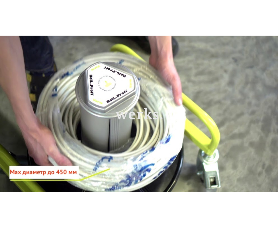 Размотчик Uniroller 300-Plus (Vario) существенно облегчает процесс размотки кабелей и проводов из бухт высотой до 300 мм. Бухта устанавливается на вращающуюся круглую платформу устройства, что позволяет разматывать кабель без его перекручивания и образования петель или узлов. Диаметр сердечника, на который надевается бухта, можно настраивать с помощью подвижных пластин, что позволяет адаптировать его под внутренний диаметр бухты для надежной фиксации. В комплект входят 4 колесные опоры с фиксирующим механизмом. Размотчик предназначен для использования как в помещениях, так и на улице. Компактные размеры позволяют легко транспортировать его на легковом автомобиле. Устройство неприхотливо в эксплуатации и не требует обслуживания. - Диаметр платформы барабана - 450 мм. - Регулируемый диаметр сердечника барабана - 150 ~ 260 мм. - Высота сердечника барабана - 300 мм. - Размер основания - 510 х 460 мм. - Общая высота устройства - 435 мм. rol90206