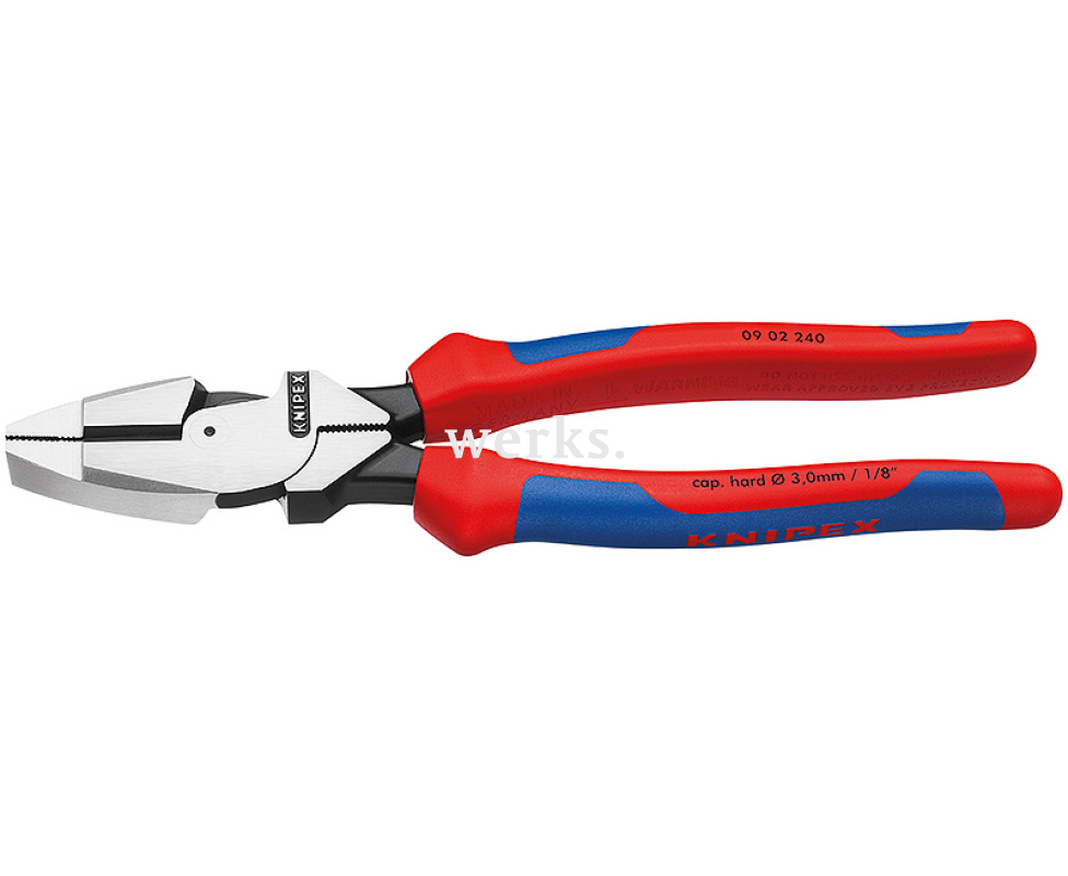 Качественные плоскогубцы для электромонтажников Knipex KN-0902240 длиной 240 мм, американская версия с отличной передачей усилия при резке.