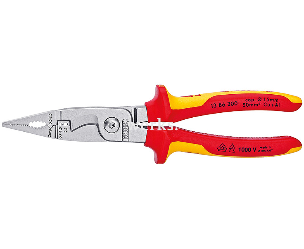 Электромонтажные клещи VDE Knipex KN-1386200 длиной 200 мм являются высококачественным инструментом, соответствующим международным стандартам. Этот легкий и компактный инструмент идеально подходит для использования в полевых условиях. Он незаменим для аккуратного снятия изоляции с проводов.