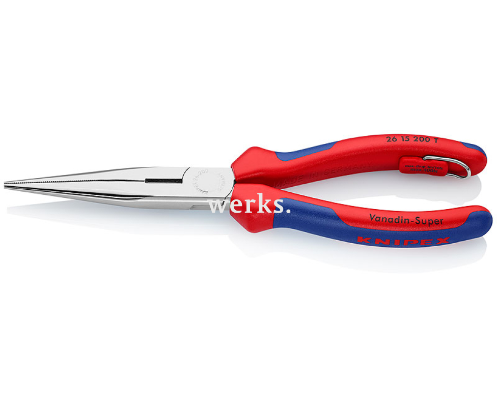 Круглогубцы с прямыми плоскими длинными губками, с режущей кромкой Knipex KN-2615200T со страховочным креплением