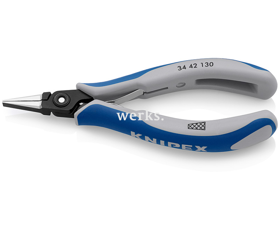 Профессиональные захватные плоскогубцы Knipex KN-3442130 для электроники длиной 130 мм, оснащенные рукоятками с двухкомпонентными эргономичными накладками.
