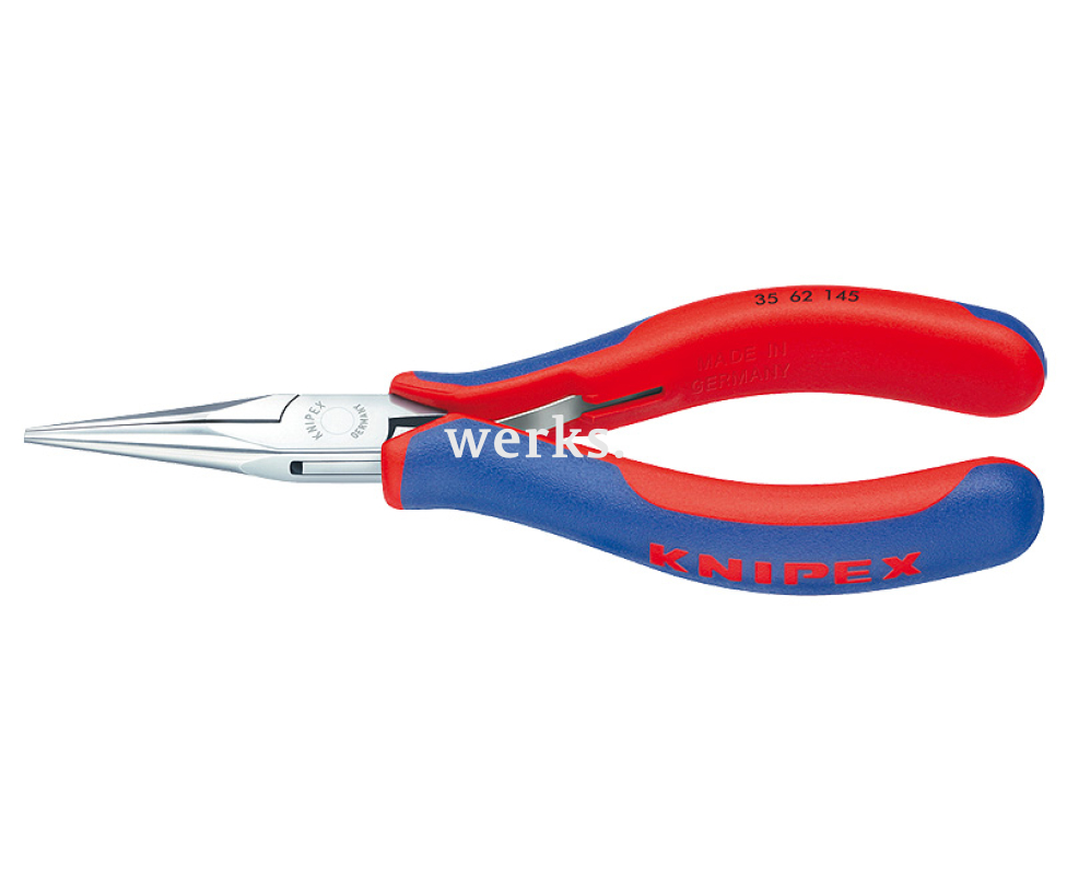 Качественные захватные плоскогубцы для электроники Knipex KN-3562145 длиной 145 мм, оснащенные коробчатым прецизионным шарниром.