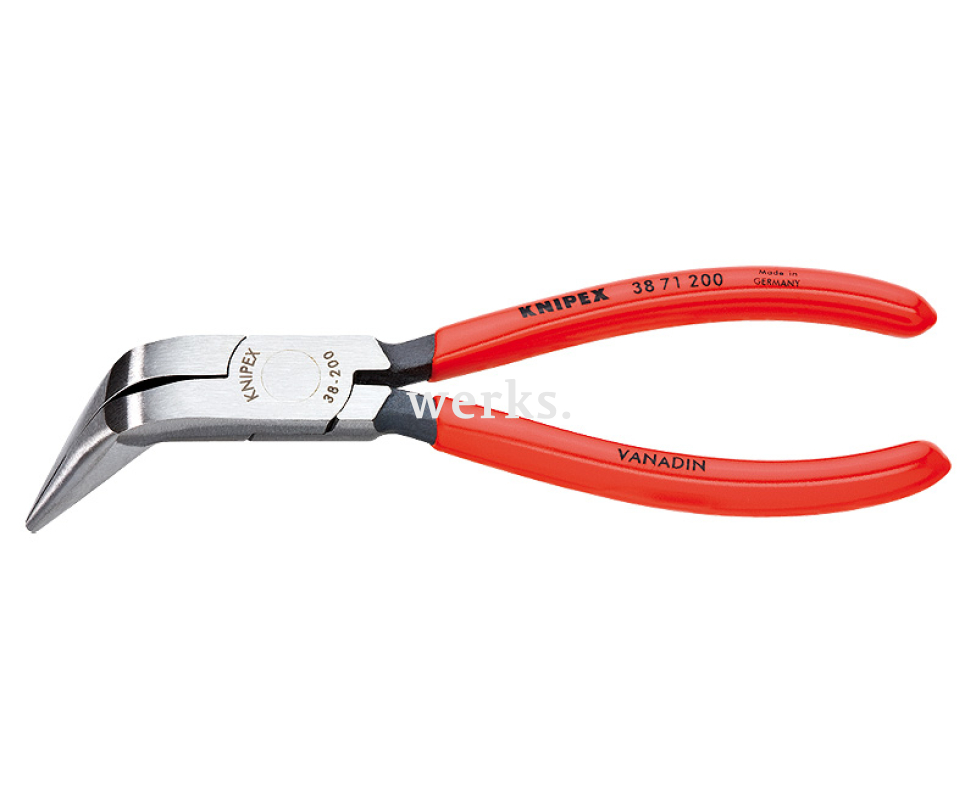 Профессиональные плоскогубцы длиной 140 мм с узкими плоскими губками, сужающимися к концу. Они изготовлены из кованой инструментальной стали, закаленной в масле, а режущие кромки дополнительно обработаны высокочастотными токами, что обеспечивает твердость HRC 60. Эти плоскогубцы предназначены для захвата, удержания, фиксации, изгибания и резки в области электроники и точной механики.