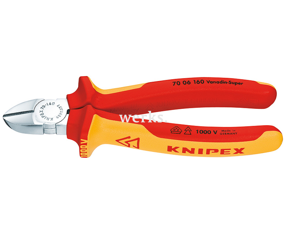 Профессиональные диэлектрические бокорезы длиной 160 мм, изготовленные из кованой ванадиевой стали с многоступенчатой закалкой в масле. Обеспечивают стабильную прецизионную заклепку, что гарантирует плавный ход и долговечность шарнира. Лезвия дополнительно закалены токами высокой частоты, достигая твердости HRC 62. Узкая головка с длинными лезвиями позволяет легко работать в ограниченных пространствах. Высокая эффективность резания достигается благодаря оптимальной геометрии лезвий и передаче усилия. Безопасны для использования с узлами и деталями под напряжением до 1 000 В переменного тока.