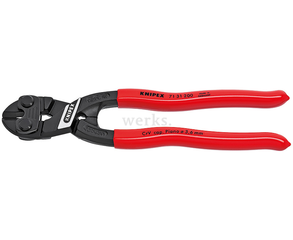 Профессиональный компактный болторез KNIPEX CoBolt KN-7131200 длиной 200 мм обладает высокоэффективной конструкцией шарниров, что обеспечивает исключительную режущую способность при минимальных усилиях.