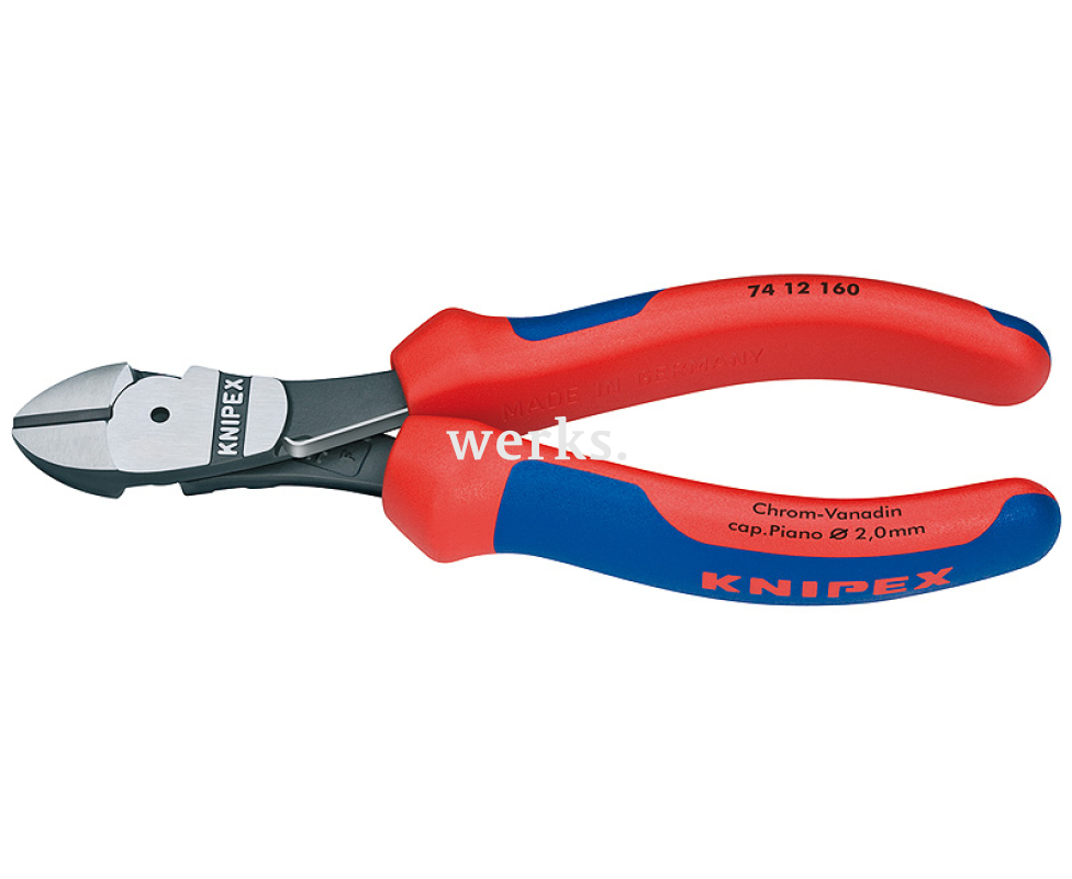 Кусачки боковые Knipex KN-7412180 длиной 180 мм отличаются высокой надежностью и удобством в использовании. Они выполнены из прочной кованой хромванадиевой стали, прошедшей закалку.