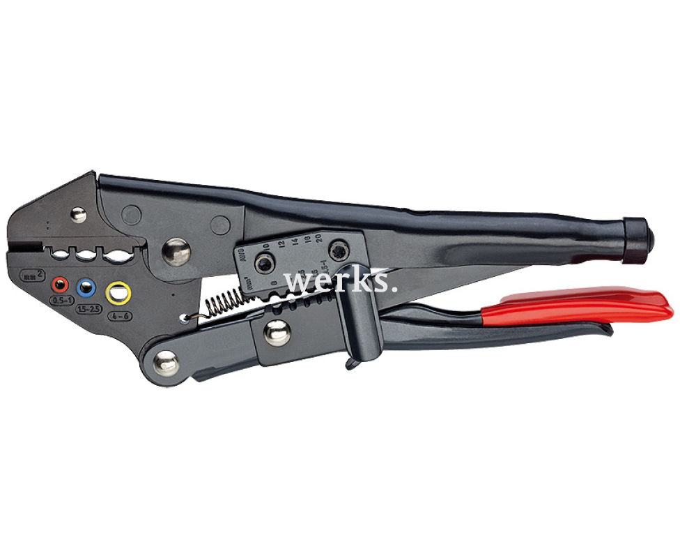 Качественные и практичные зажимные клещи для опрессовки Knipex KN-9700215A длиной 215 мм обеспечивают надежный электрический контакт между проводами благодаря процессу опрессовки.