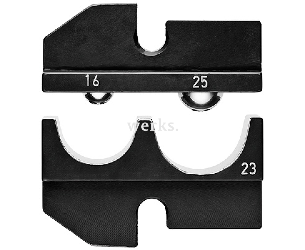 Профессиональный инструмент Плашка опрессовочная для неизолированных кабельных наконечников + штекер Knipex KN-974923, длиной в мм, обеспечивает отличную прочность соединения при минимальных усилиях, гарантируя точный обжим и высокую надежность.