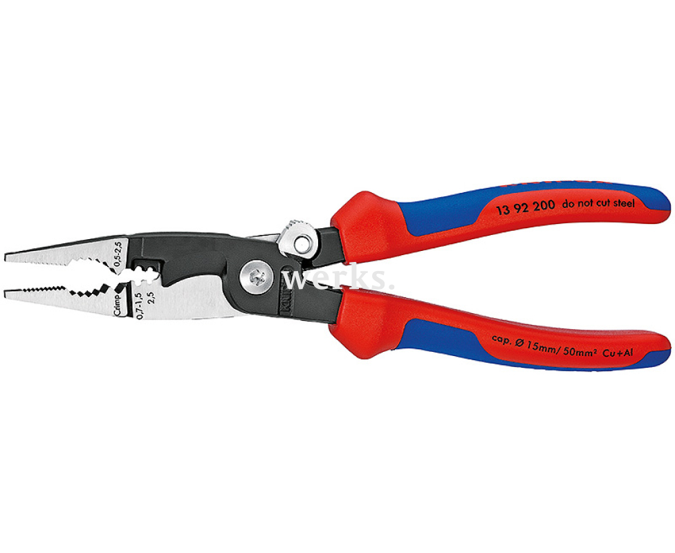 Электромонтажные клещи Knipex KN-1392200 длиной 200 мм – это инструмент, который отвечает самым строгим международным требованиям. Компактный и прочный, он отлично подходит для снятия изоляции с проводов.