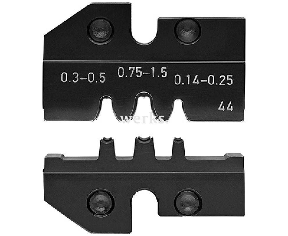 Качественная и практичная Плашка опрессовочная для трубчатых контактов Knipex KN-974944 длиной мм, выполнена из прочной специальной вороненой стали.