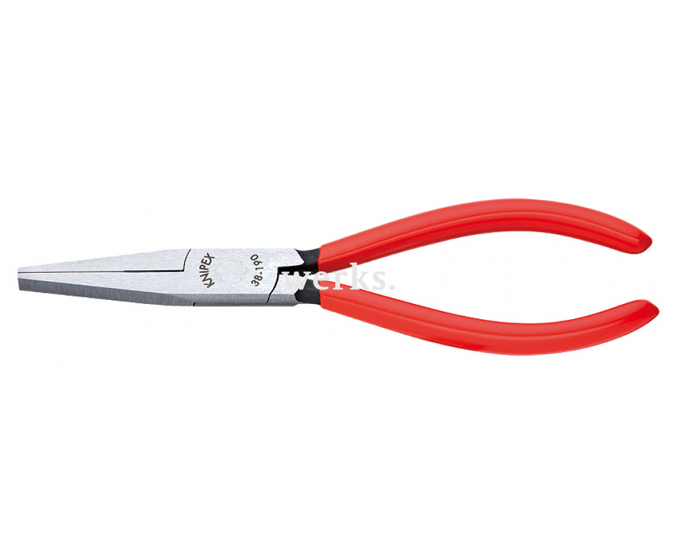 Профессиональные плоскогубцы длиной 140 мм с узкими плоскими губками, сужающимися к концу. Они изготовлены из кованой инструментальной стали, закаленной в масле, а режущие кромки дополнительно обработаны высокочастотными токами, что обеспечивает твердость HRC 60. Эти плоскогубцы предназначены для захвата, удержания, фиксации, изгибания и резки в области электроники и точной механики.