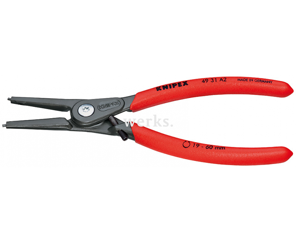 Щипцы Knipex KN-4931A2 длиной 180 мм, предназначенные для работы с внешними стопорными кольцами на валах, являются высококачественным инструментом для их снятия и повторной установки.