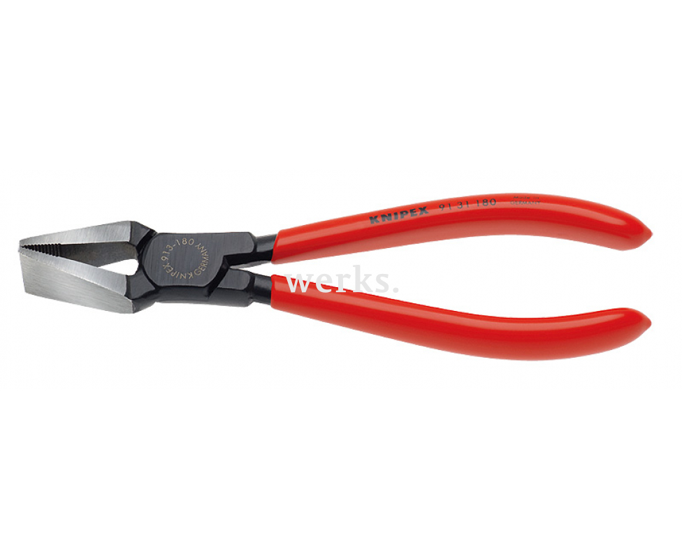Комфортные плоскогубцы Knipex KN-9131180 длиной 180 мм являются отличным инструментом для отламывания тонких стеклянных полосок по заранее выполненному надрезу, а также для обработки и выравнивания краев стекла.