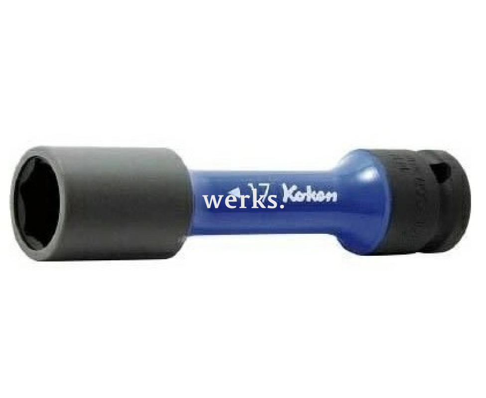 Удлиненная тонкостенная головка Ko-ken 14145PM-110 на 17 мм с квадратом 1/2 дюйма и защитным колпачком предназначена для бережного откручивания колесных гаек без повреждения дисков.