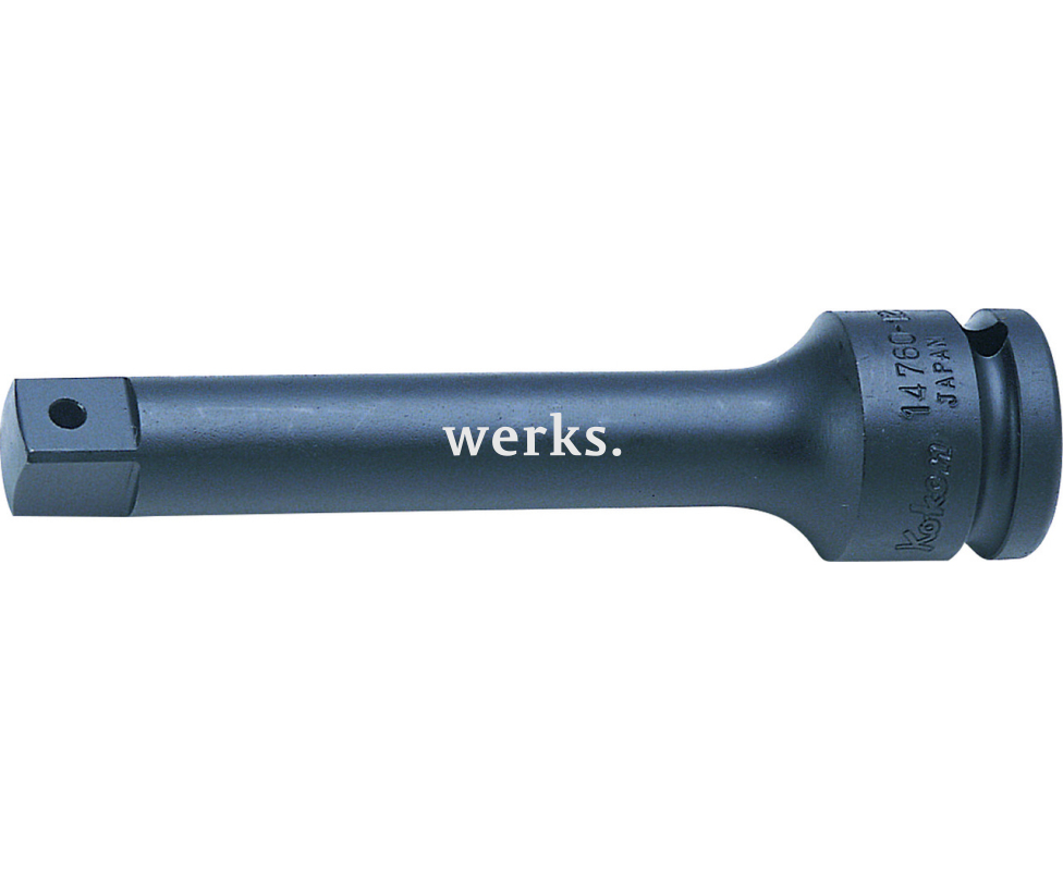 Удлинитель Ko-ken 14760-75 для ударных головок 1/2 дюйма диаметром 30 мм и весом 188 г обеспечивает удобный доступ к крепежу в труднодоступных местах без потери момента.
