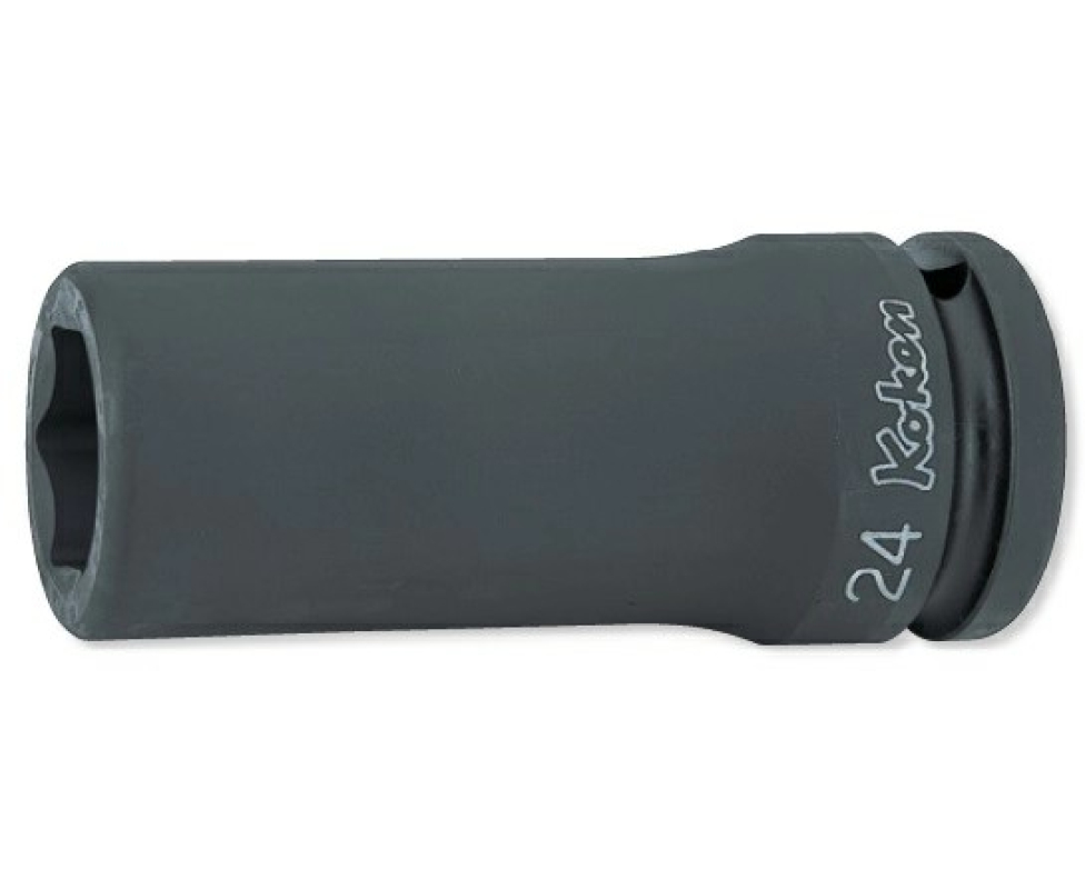 Удлиненная ударная головка Ko-ken 16300M на 27 мм с квадратом 3/4 дюйма предназначена для работы с крепежом средних размеров в условиях ограниченного пространства.