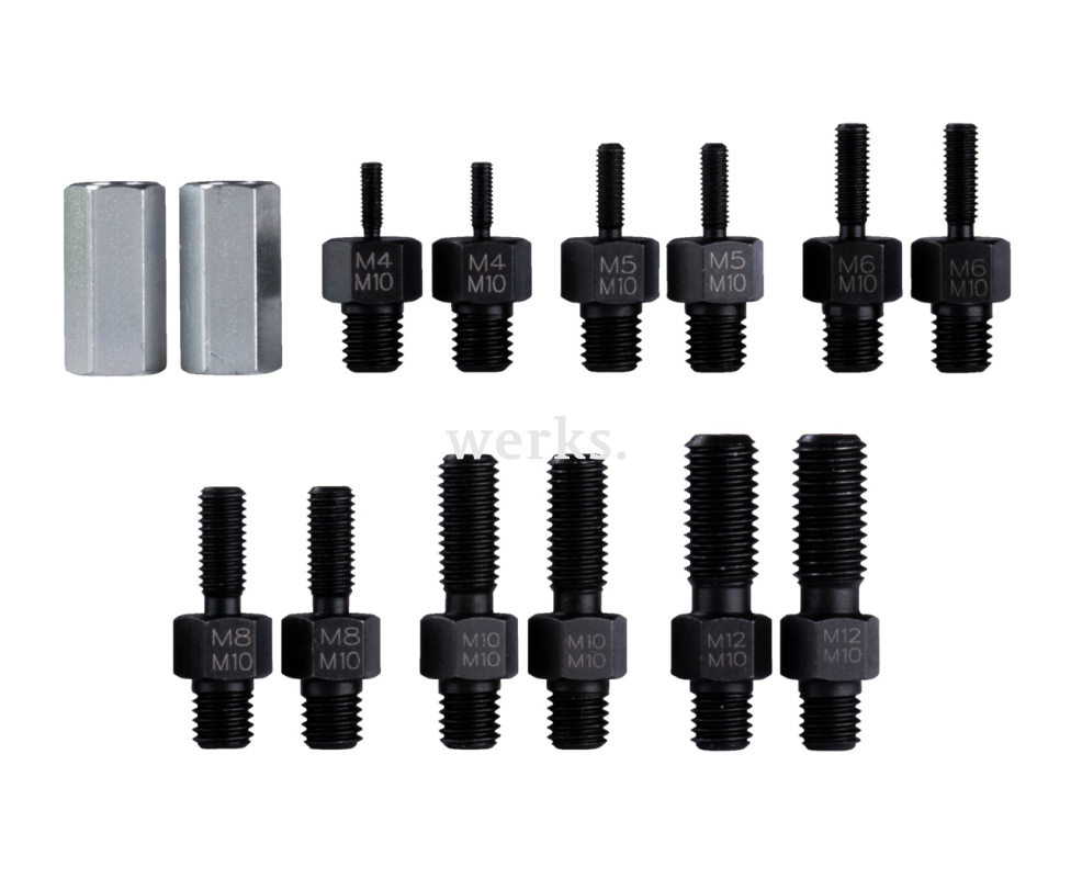 Набор резьбовых адаптеров серии 18-AS используется совместно с съёмными устройствами серии 18 для извлечения и демонтажа деталей с резьбой, таких как штифты, ключи или болты, в ремесленном производстве, промышленности и мастерских. Разделительный механизм съёмника позволяет сначала аккуратно разделить эти детали, прежде чем их можно будет извлечь. Резьбовой адаптер обеспечивает бережное и безопасное извлечение деталей с резьбовыми отверстиями. Универсальная комплектация для оптимального практического применения.