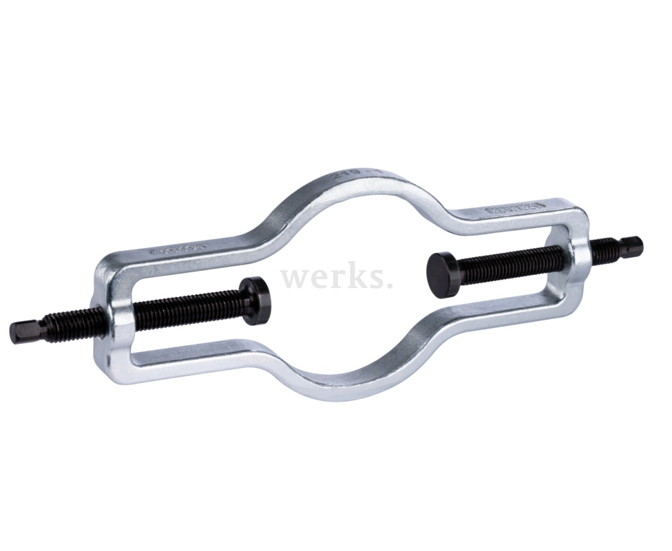 Зажим для двухлапчатых съёмников используется для обеспечения устойчивости при демонтаже с использованием удлинителей. Он особенно плотно прижимает съёмную губку к снимаемой детали, предотвращая соскальзывание. Максимальная устойчивость при демонтаже.