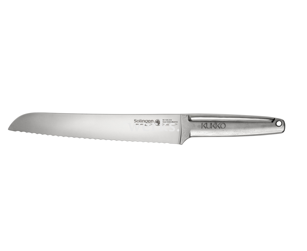 Нож для хлеба со стальной ручкой, длина лезвия 210 мм, для хлеба, выпечки, тортов, пирогов KUKKO 90-104-210