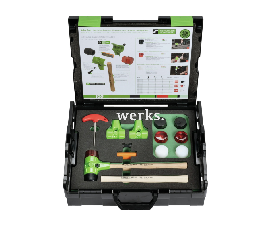 С помощью мягкого молотка Selecthor из набора K-Selecthor можно точно обрабатывать, позиционировать и выравнивать чувствительные поверхности. В комплект входят различные ударные вставки из резины, пластика и нейлона, которые можно комбинировать или заменять в зависимости от области применения. Ударные вставки износостойкие, амортизирующие и служат дольше, чем обычный резиновый молоток. Они особенно широко используются в садоводстве/ландшафтном дизайне, укладке тротуаров, установке бордюрного камня, кладке и лестницах, а также при строительстве заборов, строительных лесов, палаток, сборных домов, плотницких работах и ремонтно-эксплуатационных работах. Инновационная противооткатная вставка обеспечивает оптимальную силу удара с минимальной нагрузкой на суставы. Отсутствие отдачи с одновременным увеличением энергии удара в размерах D30 - D80. Бережное отношение к суставам благодаря противооткатной вставке.
