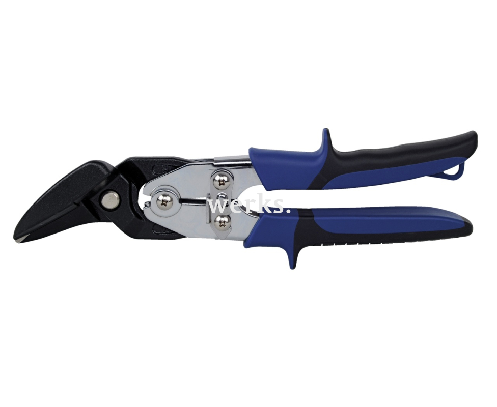 Ножницы Ideal в прочной конструкции предназначены для прямой и непрерывной резки, а также для резки по кругу на трудноразъемных листах. Ножки ножниц изготовлены из прочной листовой стали и имеют противоскользящее двухкомпонентное покрытие. Встроенная пружина открытия обеспечивает удобство использования. Максимальная толщина резки составляет от 1,2 мм для листов V2A до 1,8 мм для листов V2A. Благодаря оптимизированной конструкции и геометрии ножниц возможен рез даже в труднодоступных местах. Высокое усилие благодаря рычагу-усилителю. Эргономичная рукоятка для работы без усталости.