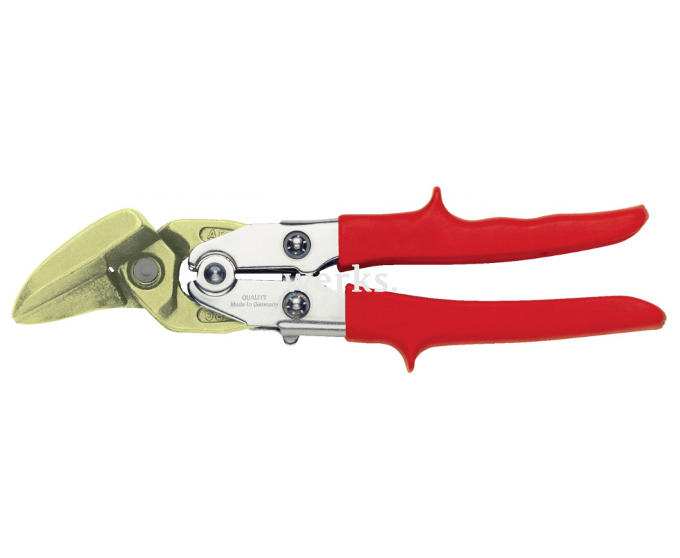 Ножницы Ideal предназначены для прямой и непрерывной резки, а также для круговой резки трудноразрезных листов. Рукоятки ножниц изготовлены из прочной листовой стали и имеют двухкомпонентное противоскользящее покрытие. Головка ножниц покрыта нитридом титана (TiN), что обеспечивает ещё большую прочность. Лезвия изготовлены из быстрорежущей стали, что значительно увеличивает скорость резки. Встроенная пружина открытия обеспечивает удобство использования. Благодаря оптимизированной конструкции и геометрии ножниц, возможен доступ даже к труднодоступным местам. Высокое усилие благодаря рычагу-усилителю. Эргономичная рукоятка для работы без усталости.