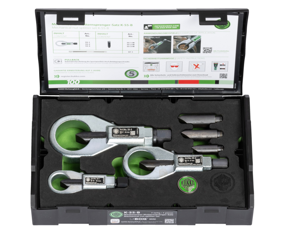 Набор механических гайкорезов 55-1/-2/-3 со сменными зубилами в L-Boxx Mini KUKKO K-55-B