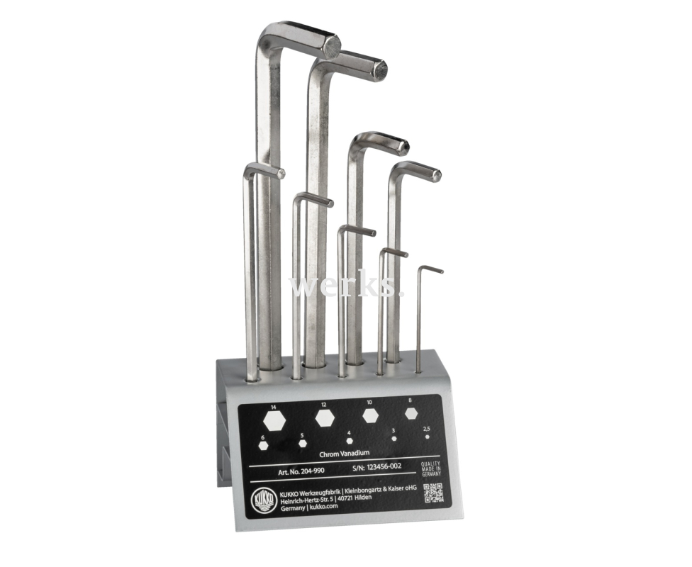 Стойки для торговых точек и мастерских серии 204 длиной ISO 2936 используются для надлежащего хранения шестигранных ключей в мастерских, на производстве и в торговле. Твёрдость и крутящий момент соответствуют стандарту ISO. Серия 204 недорогая и компактная. Аккуратно скошенные передние кромки. Различные версии позволяют использовать шестигранники разных размеров.