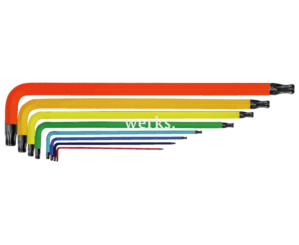 Шестигранные ключи серии 212BT с цветовой кодировкой и шаровой головкой используются для работы с труднодоступными головками винтов в мастерских, на производстве и в сфере торговли. В отличие от шестигранных ключей, профиль Torx располагается в центре, что облегчает работу и снижает износ. Цветовая кодировка шестигранных ключей облегчает выбор нужного размера. Цветовая кодировка шестигранных ключей упрощает выбор. Различные конструкции позволяют использовать их с различными размерами шестигранников.