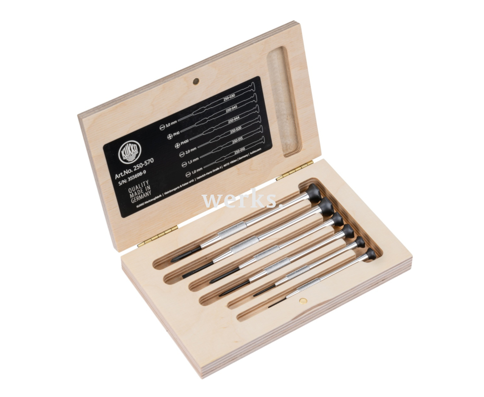 Набор часовых отвёрток, в деревянном футляре KUKKO 250-570
