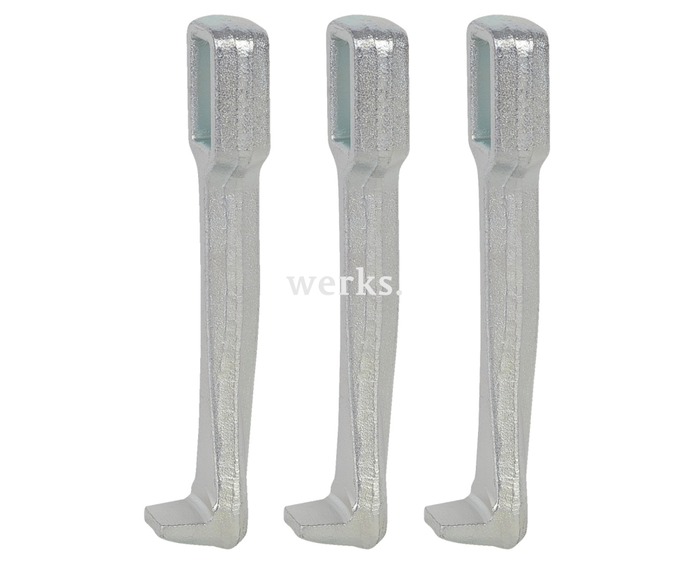 Комплект из трёх лап съёмника подходит для трёхлапкового универсального съёмника «VARIO». Прочные лапы съёмника гарантируют особенно надёжный демонтаж без повреждений. Благодаря свободно перемещающимся по траверсе лапкам съёмника, можно снимать даже эксцентриковые детали.