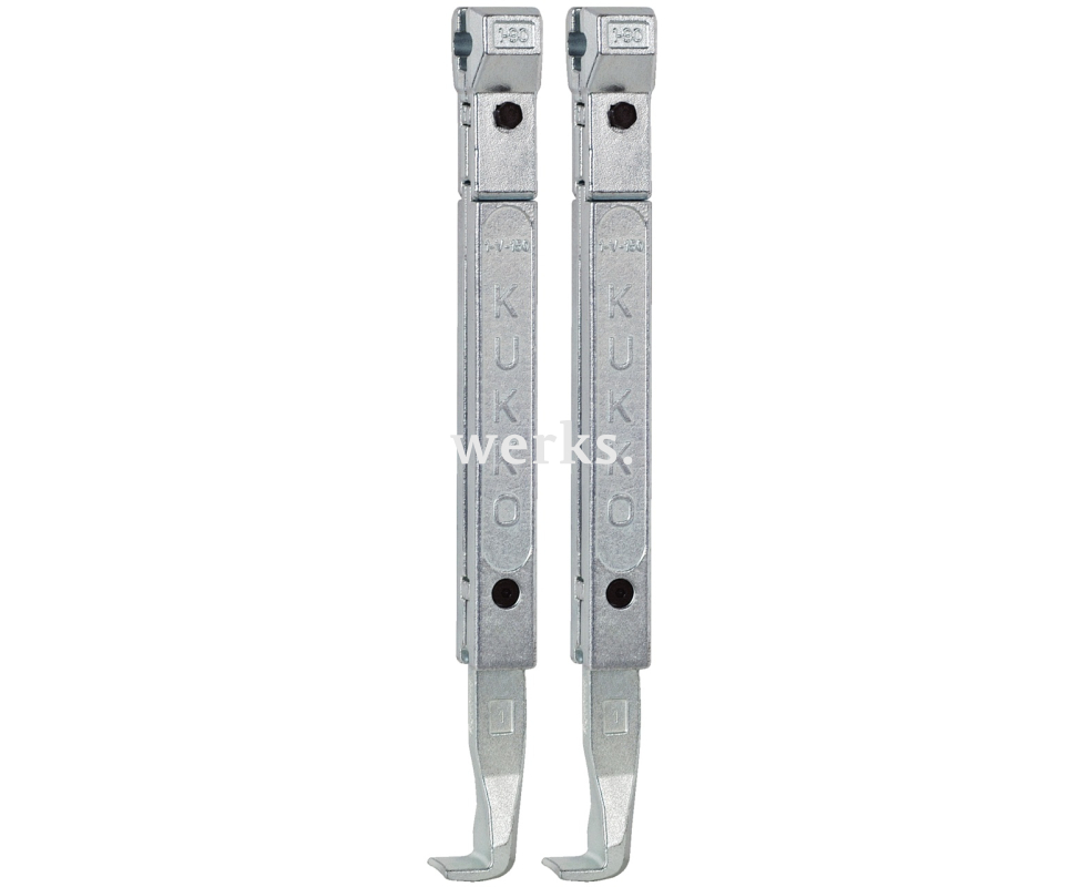 Пара из двух стандартных захватов подходит для универсальных двухзахватных съёмников. Прочные захваты обеспечивают особенно безопасный демонтаж подшипников, шестерён и дисков. Благодаря свободно перемещающимся по траверсе захватам, можно снимать даже эксцентриковые детали.