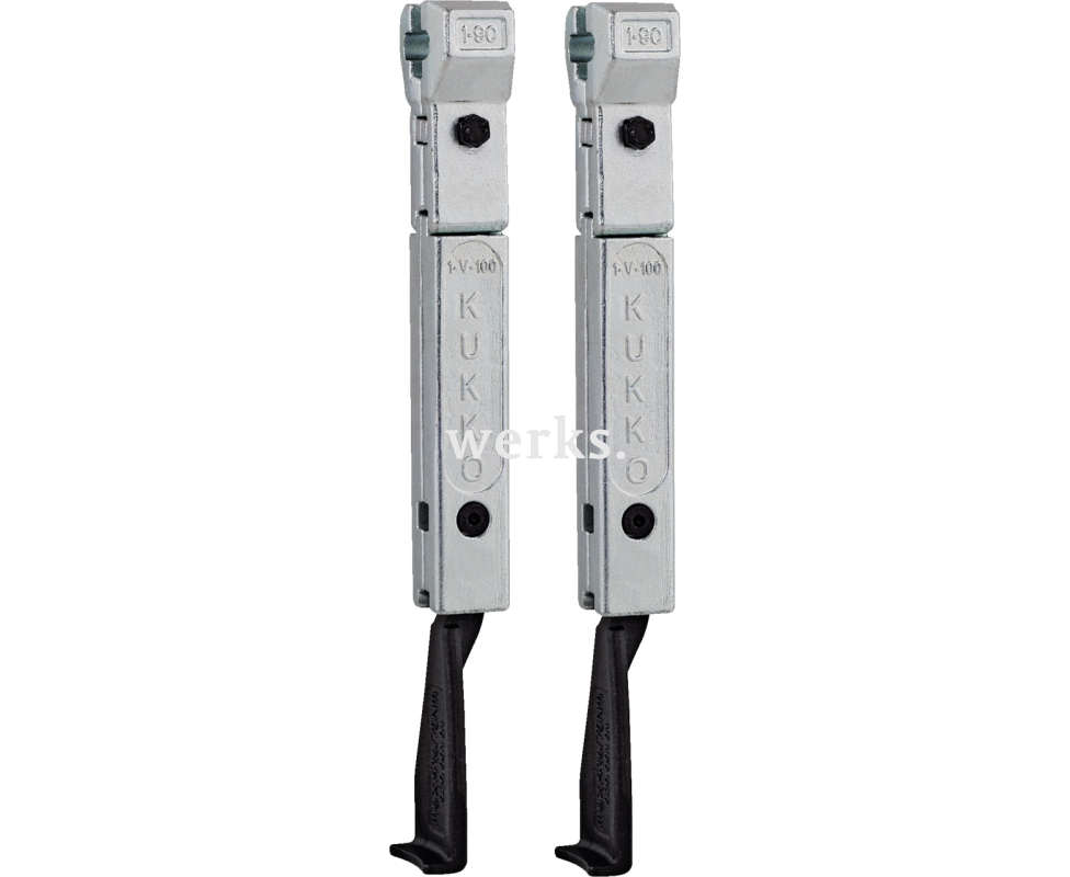 Пара из двух узких съёмных захватов подходит для универсальных съёмников с двумя захватами. Узкие захваты позволяют работать даже в узких и труднодоступных местах. Благодаря свободно движущимся захватам, скользящим по траверсе, можно снимать даже эксцентричные детали.