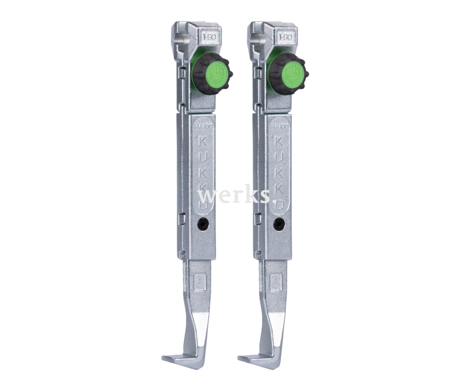 Пара из двух быстрорегулируемых стандартных съёмных захватов подходит для универсальных двухлапковых съёмников. Прочные съёмные захваты гарантируют особенно безопасный съём подшипников, шестерён и дисков. Зелёные рифлёные ручки обеспечивают максимальный комфорт в работе и позволяют быстро и без инструментов ослаблять и закреплять съёмные захваты, даже мокрыми или масляными руками. Благодаря свободному скольжению съёмных захватов по траверсе, можно снимать даже эксцентриковые детали. Насечка позволяет быстро и без инструментов ослаблять и переустанавливать съёмные захваты.
