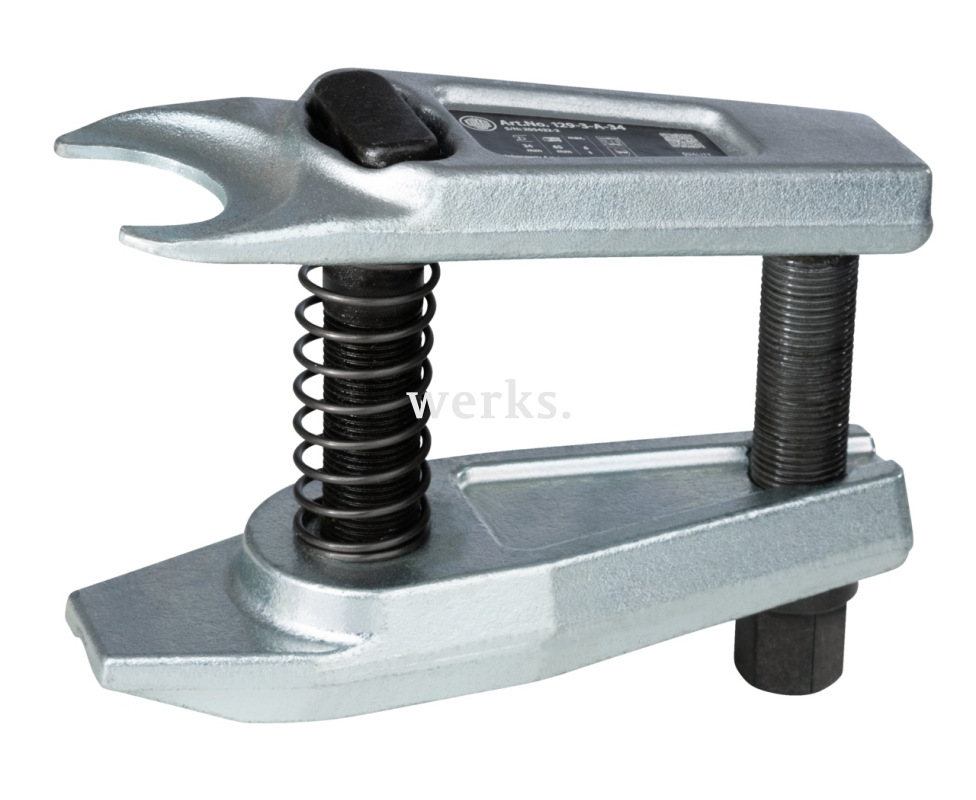 Съемник шаровых опор с рычагом серии 129 используется для извлечения шаровых пальцев при демонтаже шаровых опор и наконечников рулевых тяг, особенно для автомобилей с алюминиевой подвеской. Благодаря своему рычагу съемник шаровых опор может прилагать большое усилие даже в условиях ограниченного пространства. Серия 129 впечатляет своей универсальностью. В серии представлены съемники шаровых опор разных размеров с различными раскрытиями губок. Диапазон зажима рычага регулируется шагом резьбы центрального шпинделя. Глубина зажима легко регулируется с помощью пружинного механизма. Болт можно отрегулировать для гибкой адаптации диапазона зажима.