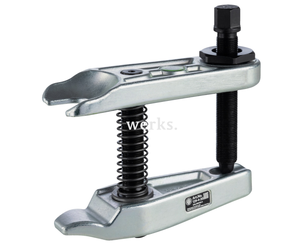 Съемник шаровых опор с рычажным усилением серии 129 используется для извлечения шаровых пальцев при снятии шаровых опор, а также наконечников рулевых тяг на рулевых тягах автомобилей. Ограниченное пространство не позволяет использовать съемник аккуратно. Благодаря специальной конструкции, демонтаж шарнира поперечного рычага осуществляется без касания других компонентов оси, что защищает чувствительные поверхности. Серия 129 впечатляет своей широкой областью применения. Версия 129-4-30 была специально разработана для Audi R8. Диапазон зажима рычага регулируется с помощью резьбы центрального шпинделя. Улучшенные тактильные ощущения благодаря современной и эргономичной конструкции. Низкое усилие для высокой производительности извлечения.