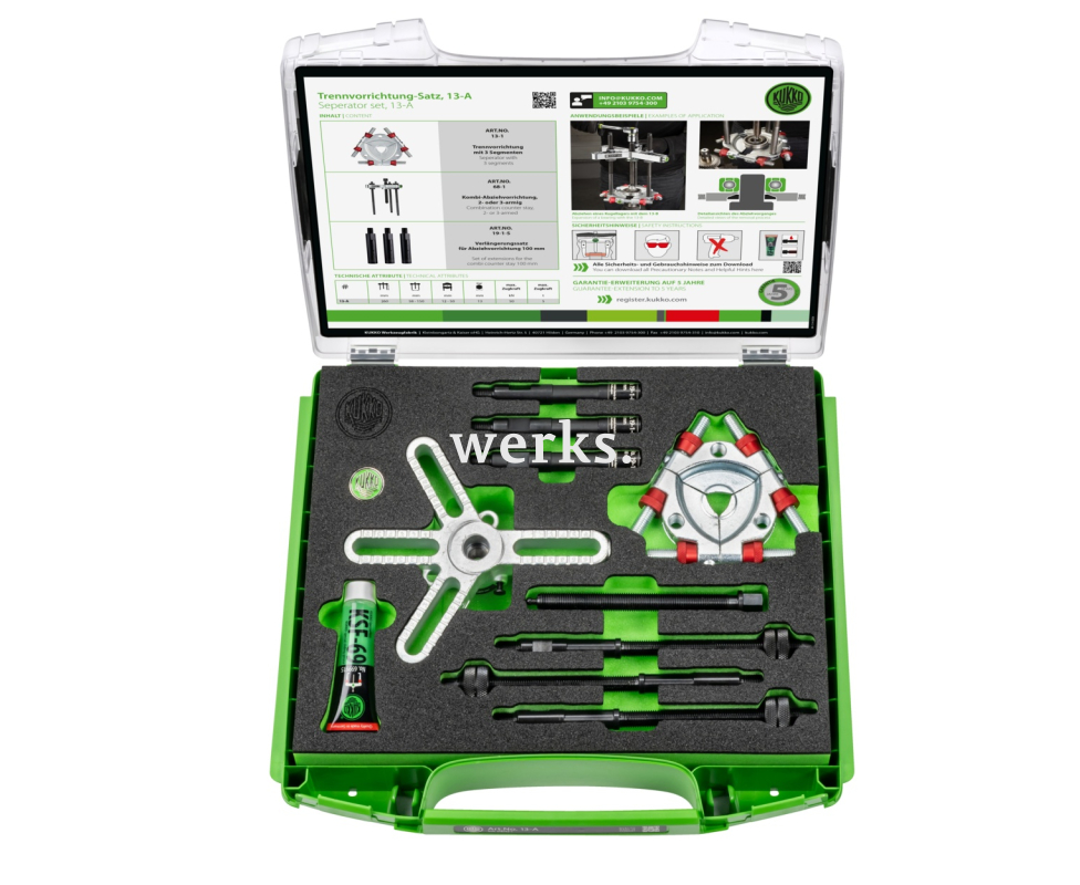 Набор сепараторов 13-A из 8883 предметов используется для демонтажа шарикоподшипников, роликоподшипников, внутренних колец и других плоских деталей в ремесленном производстве, промышленности и мастерских, где недостаточно места для захватов. Процесс демонтажа и извлечения позволяет бережно отделить эти детали перед их извлечением. Этот набор из 8883 предметов включает в себя одно устройство для демонтажа и извлечения, а также пару удлинителей, что обеспечивает широкий спектр применения. Универсальная сборка, ориентированная на практическое применение. Хранение в коробке позволяет легко контролировать комплектацию набора.