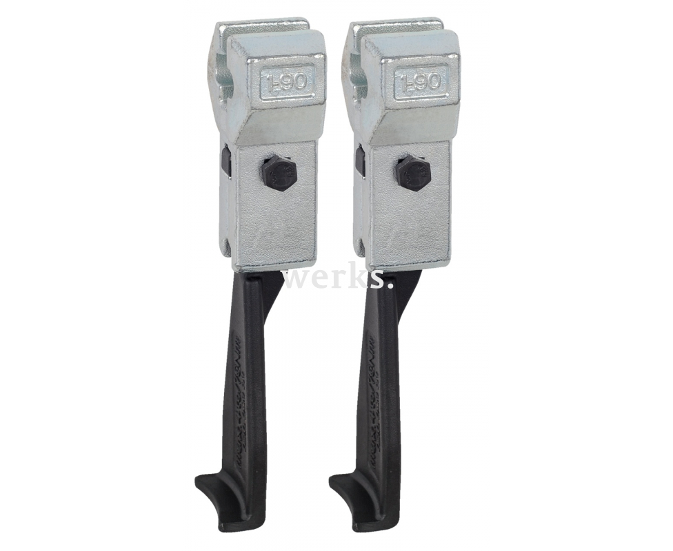Пара из двух узких съёмных захватов подходит для универсальных съёмников с двумя захватами. Узкие захваты позволяют работать даже в узких и труднодоступных местах. Благодаря свободно движущимся захватам, скользящим по траверсе, можно снимать даже эксцентричные детали.