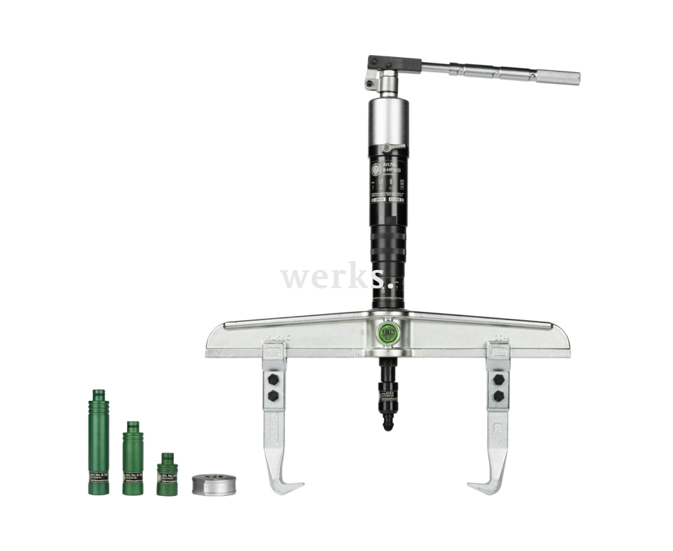 Универсальный двухзахватный съёмник с регулировкой глубины фиксации и длинным гидравлическим шпинделем (включая механический шпиндель) KUKKO 20-4-H