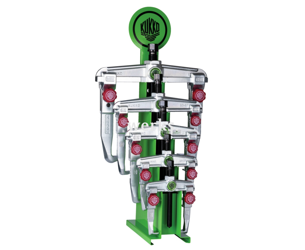 Демонстрационный стенд для универсальных двухлапковых съёмников – идеальное решение для презентации и хранения двухлапковых съёмников различных размеров. Двухлапковые универсальные съёмники используются для демонтажа подшипников, шестерён и дисков всех распространённых размеров в ремесленных, мастерских и промышленных условиях. Они подходят для демонтажа любых деталей, установленных на валу и доступных снаружи. Оснащённый прочными и регулируемыми стандартными захватами, этот универсальный съёмник обеспечивает особо безопасную и неразрушающую разборку как для наружного, так и для внутреннего демонтажа. Торговый стенд и стенд для мастерской обеспечивают упорядоченное хранение и демонстрацию двухлапковых съёмников. Винтовое соединение позволяет легко ослаблять и особенно надёжно закреплять захваты съёмника шестигранным ключом.