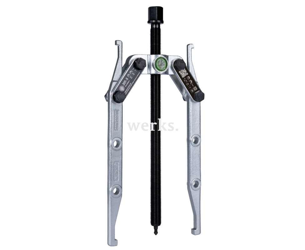 Двухзахватный съёмник с качающимися лапками, регулируемыми по высоте, используется для демонтажа вентиляторных колёс и судовых винтов всех распространённых размеров в судоходстве, мастерских и промышленности. Благодаря особо тонкой конструкции, лапки съёмника захватывают фланец вентилятора через два паза. Качающиеся лапки съёмника адаптируются к любым условиям монтажа и универсальны благодаря регулируемой глубине захвата. Кроме того, лапки съёмника можно поворачивать на 180° и использовать с обеих сторон, предлагая различные размеры захватов в зависимости от пространства под снимаемой деталью. Регулируемые лапки съёмника для индивидуальной регулировки глубины захвата благодаря нескольким отверстиям в лапках съёмника. Качающиеся лапки съёмника предлагают широкий диапазон регулировок.