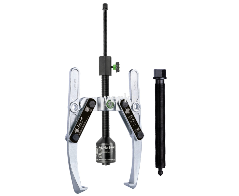 Универсальный двухзахватный съёмник с шарнирными захватами, регулировкой глубины фиксации и длинным гидравлическим шпинделем (включая механический шпиндель) KUKKO 205-3-B