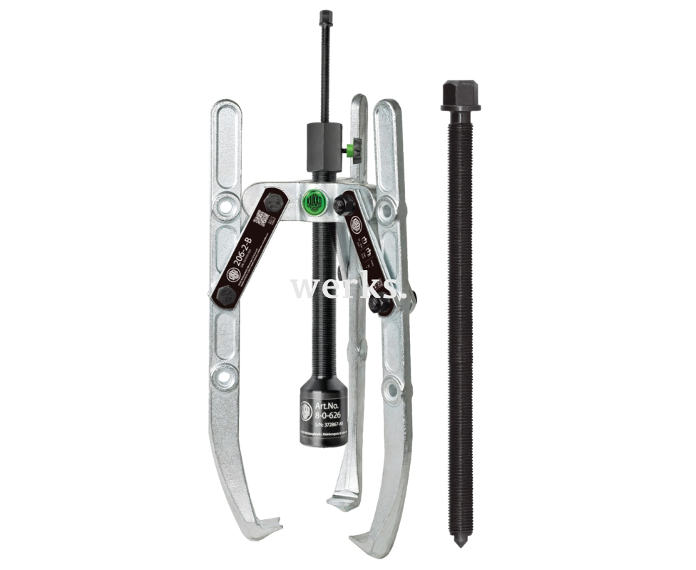 Универсальный трёхзахватный съёмник с шарнирными захватами, регулировкой глубины фиксации и длинным гидравлическим шпинделем (включая механический шпиндель) KUKKO 206-3-B