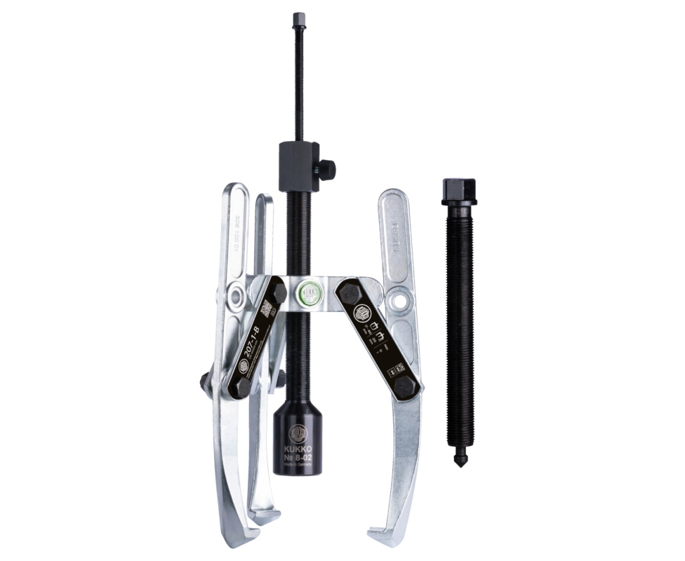 Универсальный трёхзахватный съёмник с регулировкой глубины фиксации,с длинным гидравлическим шпинделем и шарнирными захватами (включая механический шпиндель) KUKKO 207-02-B
