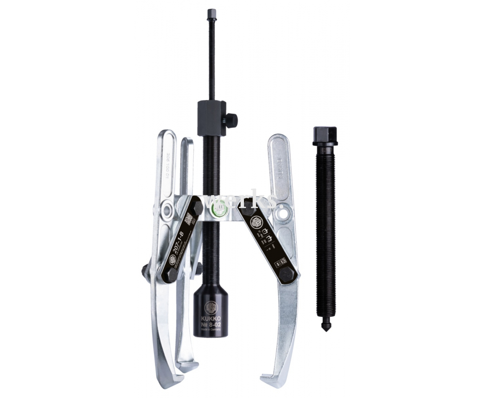 Универсальный трёхзахватный съёмник с регулировкой глубины фиксации,с длинным гидравлическим шпинделем и шарнирными захватами (включая механический шпиндель) KUKKO 207-1-B