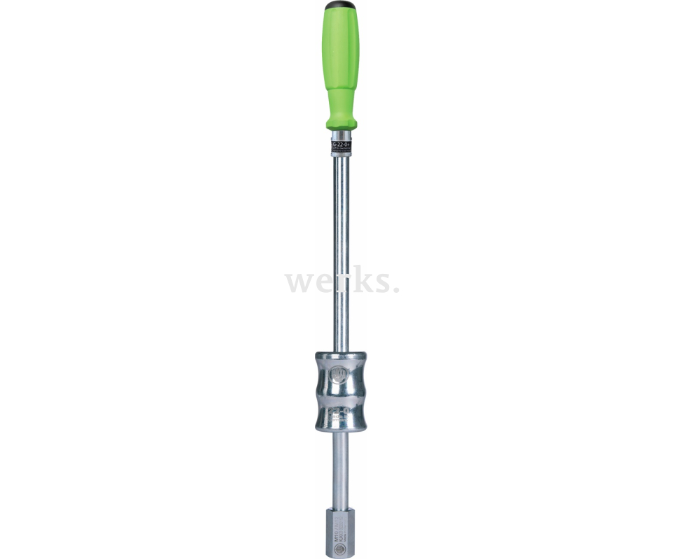 Устройства для обратного отбойного молотка серии 22-0+ используются совместно с внутренними экстракторами серии 21 в ремесленных мастерских, на производстве и в мастерских. Использование обратного отбойного молотка особенно рекомендуется при отсутствии опорной поверхности или при её повышенной чувствительности. Массивный скользящий элемент обеспечивает оптимальную передачу прилагаемого усилия и мощный ударный эффект. Это обеспечивает бесконтактное и мягкое извлечение. Эргономичная двухкомпонентная рукоятка (PB Swiss) гарантирует максимальную передачу усилия даже мокрыми и масляными руками. Форма скользящего элемента обеспечивает высокую ударную нагрузку обратного молотка и лёгкость применения. Внутренний упор предотвращает защемление и обеспечивает безопасность работы.
