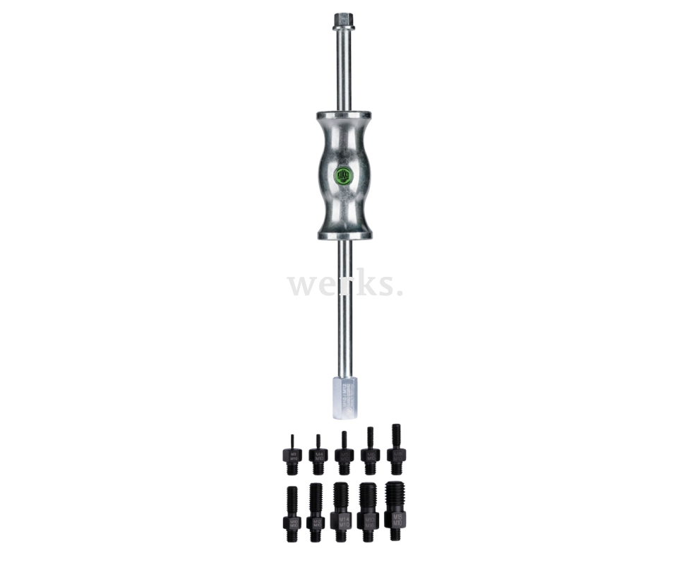 Съёмники серии 223 используются для демонтажа деталей с центрическими резьбовыми отверстиями в ремесленном производстве, промышленности и мастерских. Обратный молоток позволяет делать это совместно с резьбовыми адаптерами. Массивная скользящая часть эргономичной формы обеспечивает оптимальную передачу прилагаемого усилия и мощный ударный эффект. Это также обеспечивает бесконтактное и плавное извлечение. Резьбовые адаптеры позволяют аккуратно и безопасно извлекать детали с резьбовыми отверстиями. Благодаря лазерной маркировке на резьбовых адаптерах резьба легко идентифицируется.
